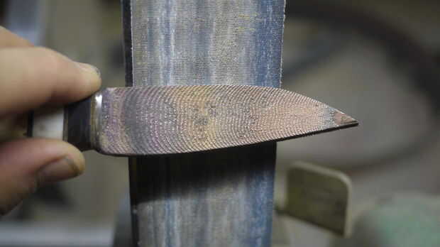 Empezar por moler los cartabones en una amoladora de banco, alternando lados y comprobar que su ventaja a medida que avanza. Puedes ver que el resultado es absolutamente áspero. Si usted no tiene una lijadora de banda o una lijadora de banco, use un archivo. Usted se sorprenderá cómo mastica rápido un archivo a través de metal.