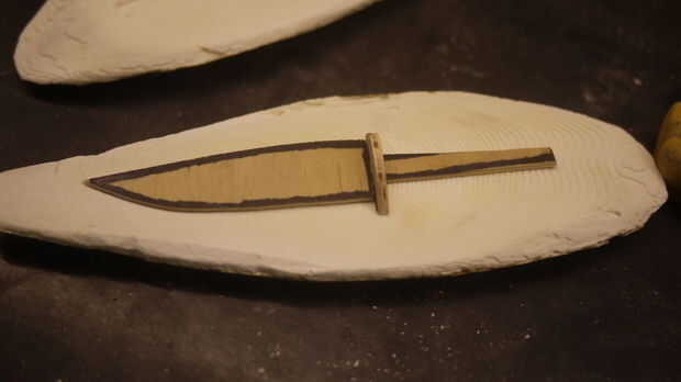 Mayoría de la gente solamente la prensa en un lado de sepia y uso lo justo para cubrirlo, pero porque quiero que un guardia, decidí hacer dos mitades para que la línea de molde cae cerca del centro de la hoja.