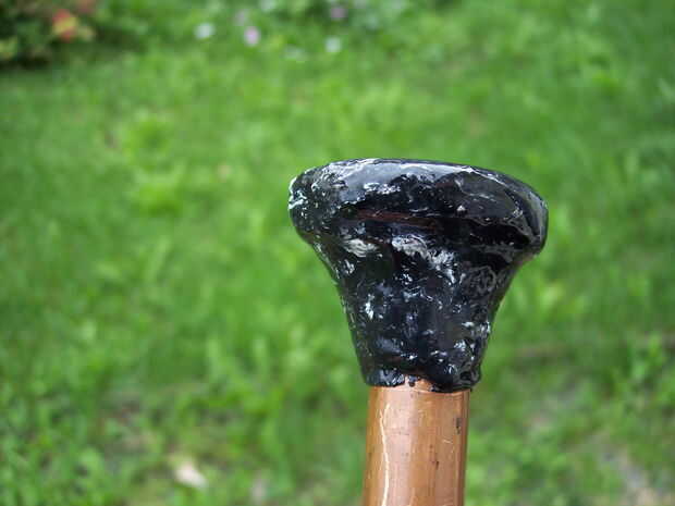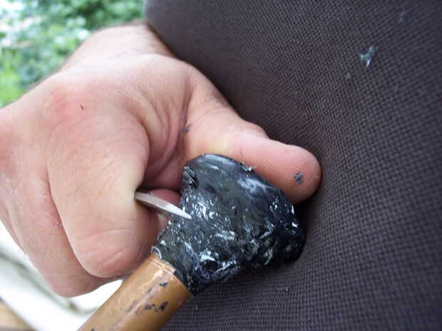 Ahora tienes que pulirla un poco. así que lo de calentamiento y rodar el borde sobre la superficie plana otra vez para redondear el final ya que un lado es seguro que será más ancha que la otra.