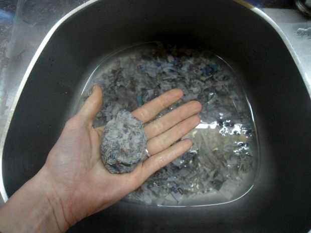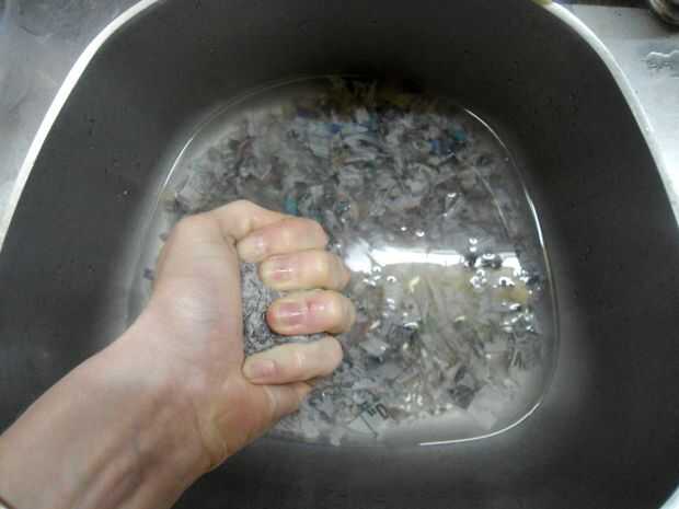 Cuando haya escurrido todo el papel, tire a trocitos.