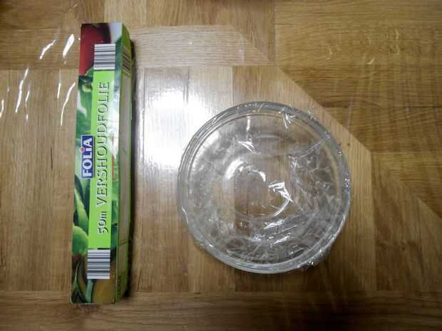 Empezar poniendo algunas se aferra película en el recipiente para que el interior está cubierto. Puede utilizar pegamento para colocar en el recipiente.