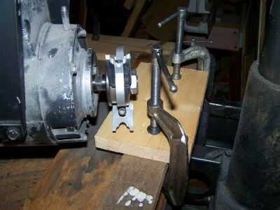 Es imprescindible que haga pivotar el brazo antes de iniciar el motor de la sierra para asegurarse de que el giro cabeza cuchillos de moldeo no atacará las abrazaderas tipo "C". Aviso que he vuelto las asas en las abrazaderas para que no entren en contacto con las cuchillas, aunque la vibración hace que se mueva.