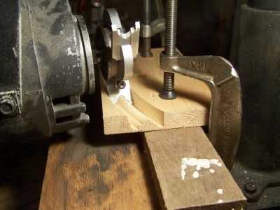 La pieza de trabajo es más gruesa que lo que se necesita para la moldura de acabado. Aunque el perfil terminado aparece en la pieza de trabajo, siguen quitando madera de la pieza de trabajo hasta que las secciones delgadas de madera sosteniendo la moldura curva con el resto de la pieza de trabajo son muy, muy finas. Sería más delgado sin embargo que lo que usted ve en la foto.