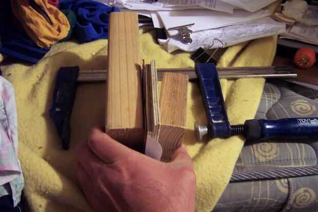 Después del remojo lo durante la noche, puse el cuero entre los moldes machos y hembras, había pegado un pedazo grande de madera a cada lado y luego sujeta con una abrazadera deslizante y deje que se seque durante un día o menos.