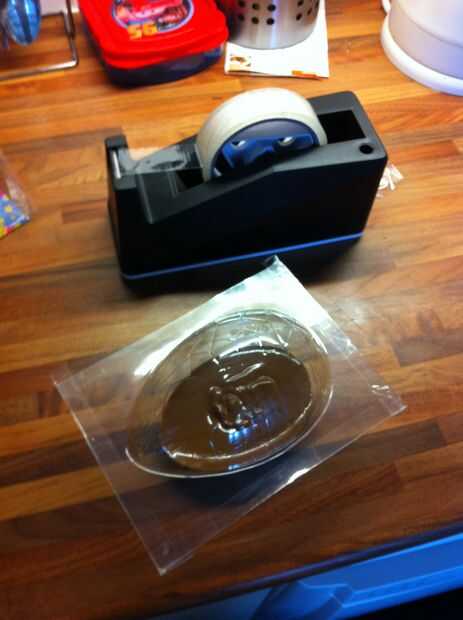 Cinta en los bordes del molde para evitar que el chocolate se escape hacia fuera - a menos que por supuesto gusta el chocolate en su alfombra...