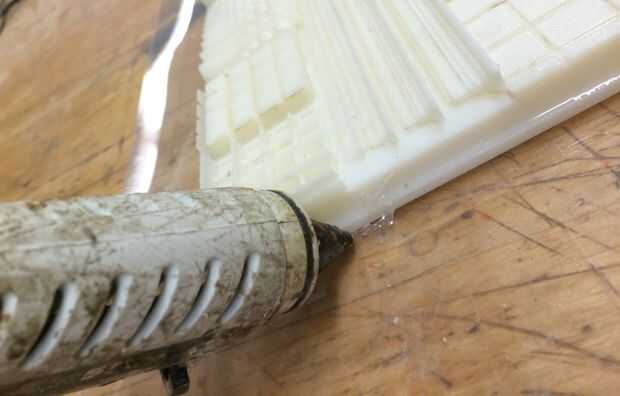 La impresión 3D a la hoja de petg del pegamento y sellar cuidadosamente su borde exterior para evitar que el yeso o latex que se filtra por debajo de.
