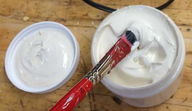 Usando un pincel viejo, látex de capa sobre la impresión 3D. Es importante aplicar el látex en finas capas incluso. Dependiendo del grosor de la capa tendrá longitudes diferentes de tiempo para que el látex seque.