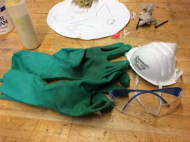 Cuando trabajo con yeso se sugiere que haga uso de equipos de seguridad. Deben emplearse una clasificado correctamente mascarilla, gafas y guantes impermeables.