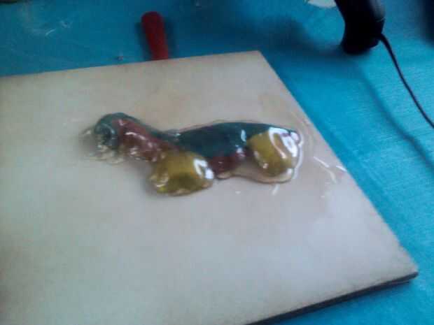 Cubrir completamente su forma de la arcilla con silicona de hoy. Ser rápido, ya que endurece rápidamente. No dejes que los agujeros en el molde. Dependiendo del tamaño de la forma, podrían estar utilizando una gran cantidad de silicona. Prepárate con otro tubo de silicona en caso de que se dirige.