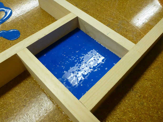 Coloque los objetos en la caja de moldeo.  Pegamento caliente los fondos a la mesa.