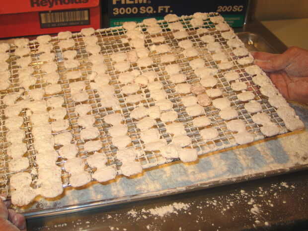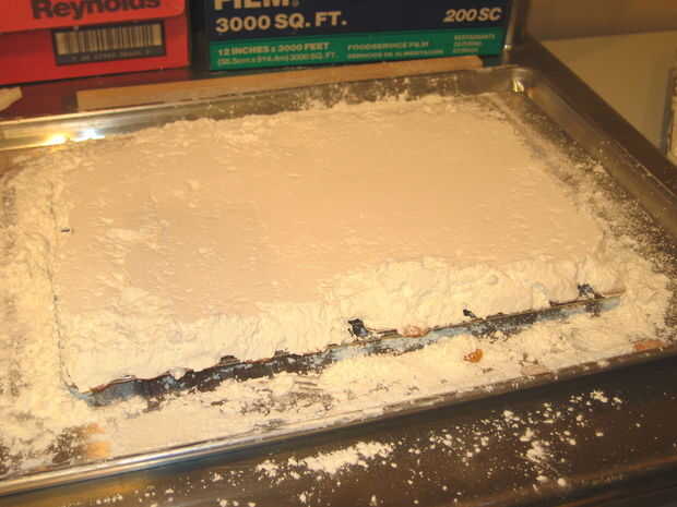 Voltea la bandeja rápidamente. Si lo haces bien que el almidón permanece en la bandeja hasta que es cara abajo en la bandeja de hoja de tamaño completo.