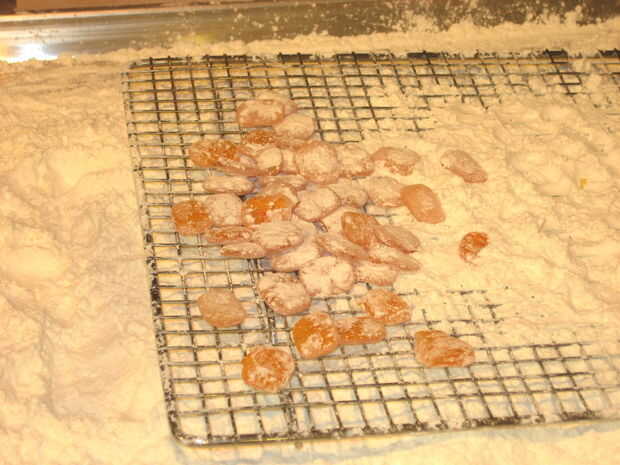 Después sacudiendo un bulto del almidón golpee cada dulce con el dorso de una cuchara para obtener incluso más apagado.
