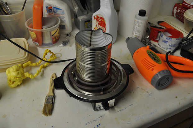 Para mis velas simplemente pongo un trozo de mecha en el molde del guante, perno el molde sobre él, derretimiento y el tinte en una lata de cera sobre una placa caliente y vierten en mi forma de silicona.