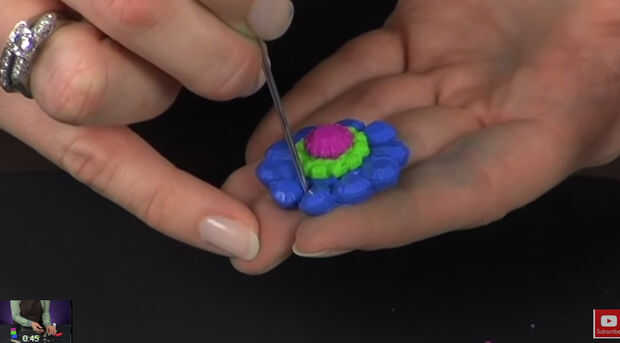 Tomar la pieza de joyería refractarios sin forma y crear un hueco entre las piedras preciosas externos utilizando la herramienta de la aguja. Páselo a través de la arcilla.