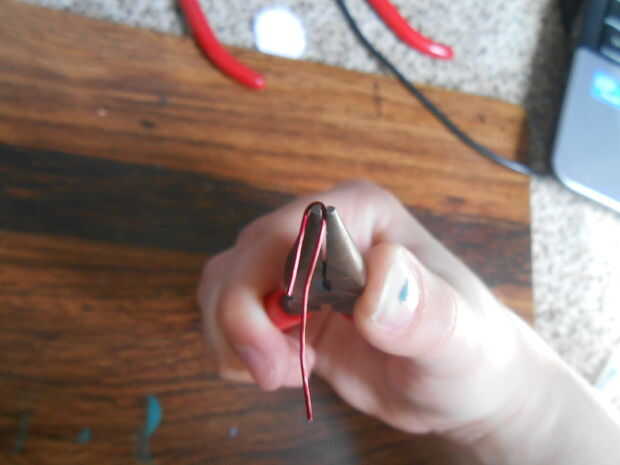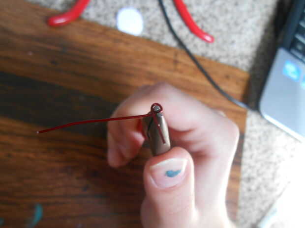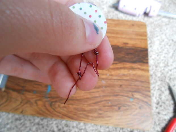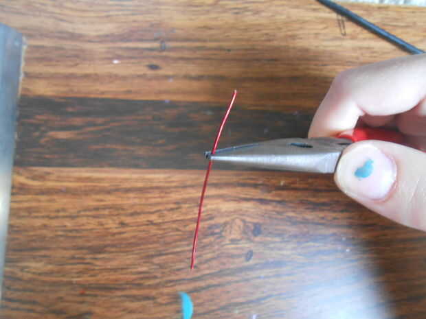 - Cortar un trozo de alambre trece centímetros largo y repita paso 3, excepto la parte donde el hilo en el lazo más pequeño alambre.