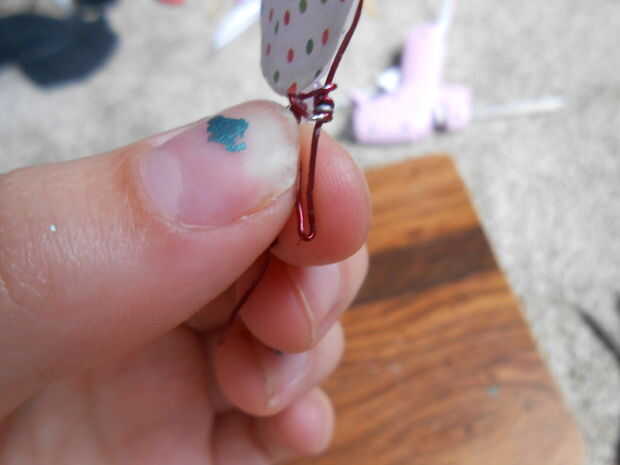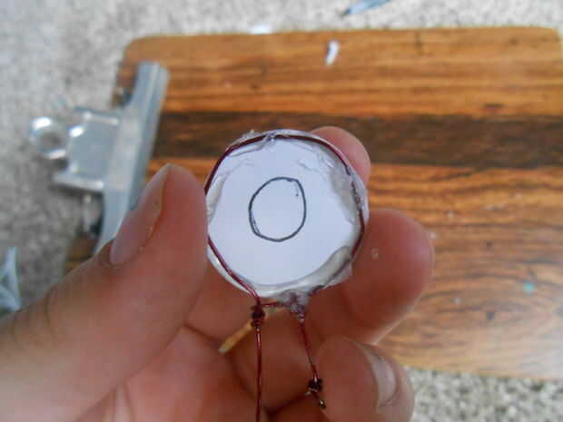 - Ejecutar el pegamento sobre el alambre y el circulo coordinación contra él para ocultar el pegamento caliente en el interior.
