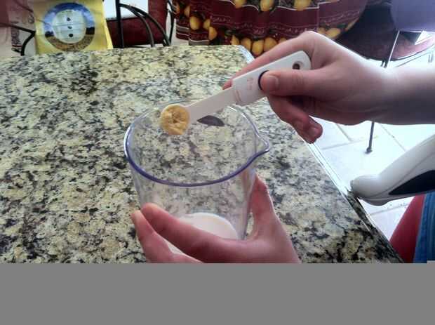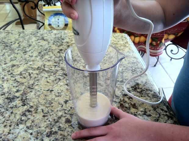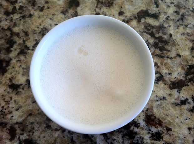 1/2 cucharadita de lecitina de soja. Luego usé una batidora de inmersión para convertir la mezcla en espuma. Tardó unos 5 minutos antes de que fuera muy espumosa.