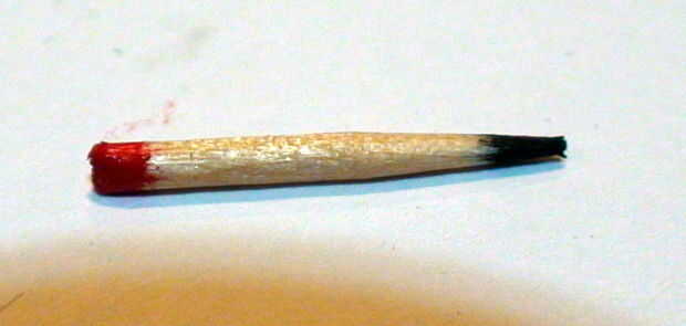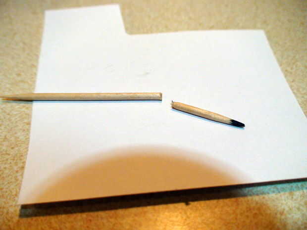Cortar un palillo de dientes, dejando la punta afilada. Si puedes, ronda el extremo despuntado un poco con una lija o tablero Emory.