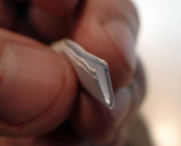 Cortar varias capas de cartulina (papel más fino también funciona) y doblar por la mitad.