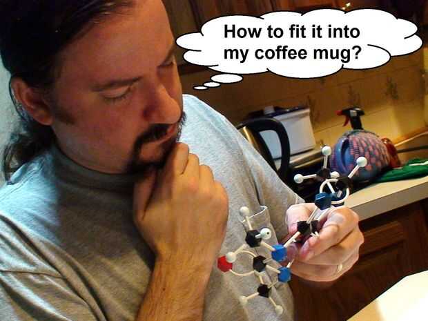 Si no lo has hecho ya, me gusta dibujar el diagrama molecular 2D para evitar que me orientan. Para aquellos sin antecedentes de química fuerte, hay muchas normas, especialmente para moléculas más grandes. Comencé a escribir algunos de los más simple hacia fuera pero el alma torturada de mi profesor de química clamó desde las profundidades abisales y me dijo que solo hay que ver el diagrama 2D en Wikipedia o una referencia más fiable. Cuando era demasiado complejo, pedí a mi esposa (esto parece menos extraño cuando te das cuenta que ella tiene una licenciatura en química). Si usted no está casado o su cónyuge no es un químico entrenado y un genio como el mío, puede que desee considerar reevaluar sus opciones de relación o mejor aún que a su experto local. Si usted está realmente en un apuro, post en los comentarios y voy a ver si puede ayudar mi esposa o nuestra red de farmacias.