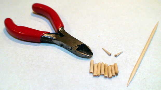Esta es la parte simple pero tediosa. Usando las cuchillas de escritura o algo similar, corte las secciones de los palillos de dientes, uno por cada enlace. La longitud depende de su sensibilidad artística. Si usted está haciendo enlaces acortados para hidrógeno, cortar alrededor de la mitad de la longitud.