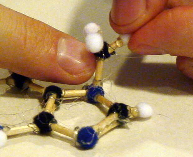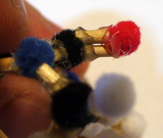 He encontrado que para un arma de pegamento caliente es más fácil aplicar el pegamento a las bolas mientras que con el bote de pegamento es más fácil sumergir los palitos. En cualquier caso, asegúrese de mantener control contra su forma prevista, especialmente para moléculas más complejas. Recuerde que los átomos del ADN, cuando dispuestos en el orden equivocado, harán de TNT. No soy responsable de explosiones modelo si usted monta su modelo en altos explosivos.