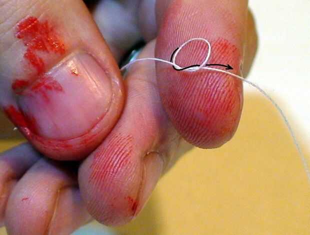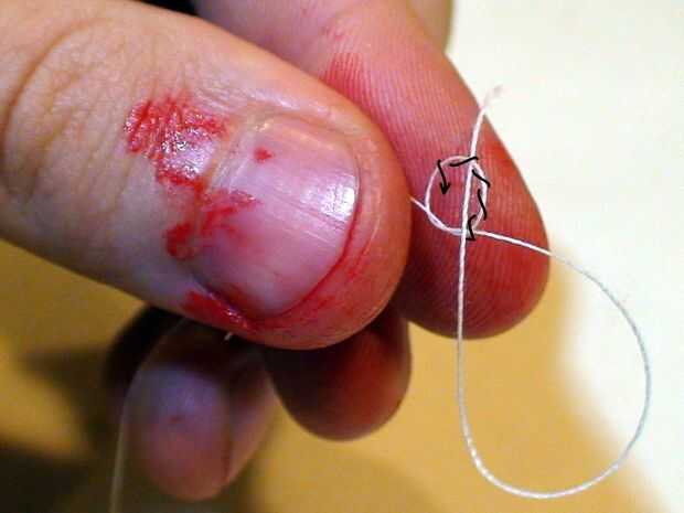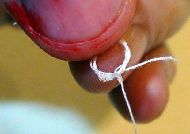Los extremos del hilo deben recortarse en el mismo punto en el lazo para que la inmersión de pegamento caliente se fije los extremos y sostener a la "cabeza" al mismo tiempo.