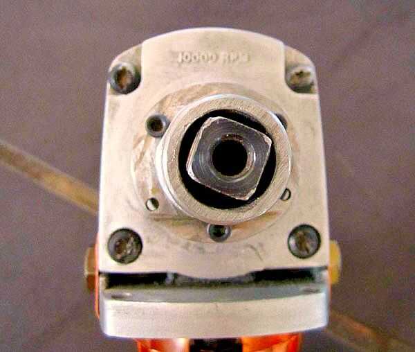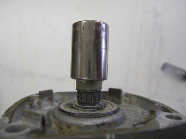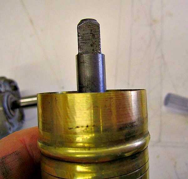 El otro extremo de la cabeza del molino era una brisa. El molinillo de café también tuvo un eje cuadrado. Fue dimensionado perfectamente para el extremo cuadrado de un enchufe de 3/8". El eje que sale de la cabeza del molino tenía una capa de fibra de vidrio sobre ella y encaja muy bien en un zócalo de 11 mm por lo que me llevó a la toma de corriente y había martillado en el eje. Fricción encajan perfectamente!