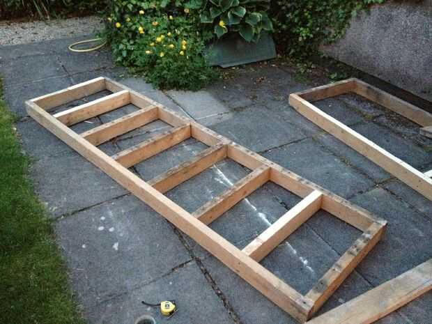 a continuación tienes las otras dos tablas largas e hizo lo mismo como la base pero esta vez hay ocho tablones entre. Había medida de distancias iguales de 14,3 pulgadas y atornillados a las tablas en su lugar.