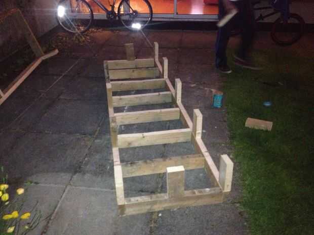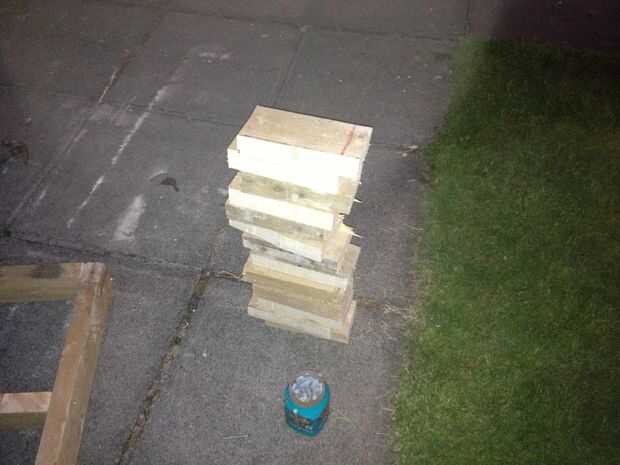 Corta hasta las tablas restantes en bloques de 22cm. Luego a la parte superior habían atornillada por taladrar los tornillos en diagonal.