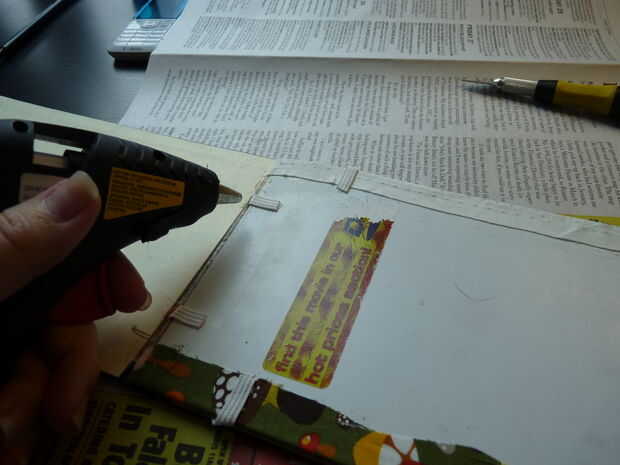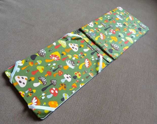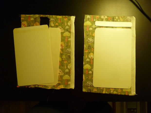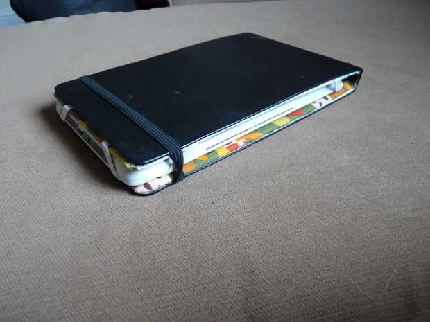 Las dimensiones de Moleskine el rincón en forma sorprendentemente bien, pero con el relleno era un poco demasiado delgada, por lo que ensancha la columna para acomodar el espesor del rincón, elásticos y dos paneles de tela. (Ver foto).