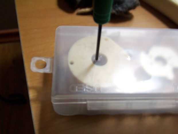 Ahora colocar el circuito en la caja, cortar un agujero donde estará el "altavoz". También cortar un agujero para el interruptor.