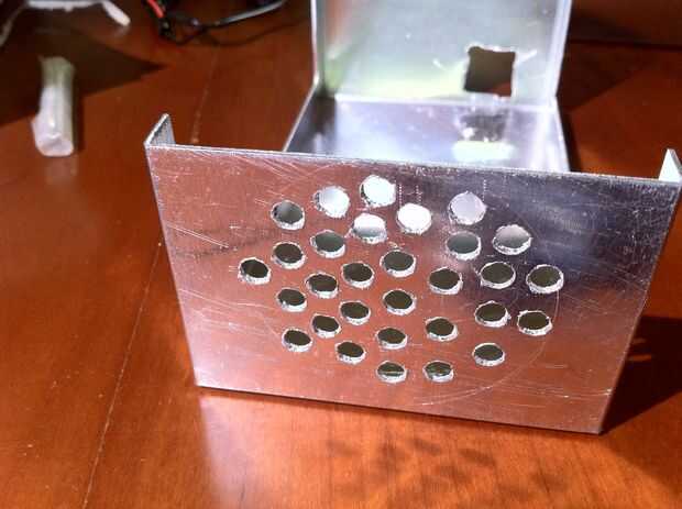 Proceda a perforar algunos agujeros para el altavoz y también un orificio cuadrado para el puerto USB. Usé un taladro y Lima de metal para crear el agujero del puerto USB.
