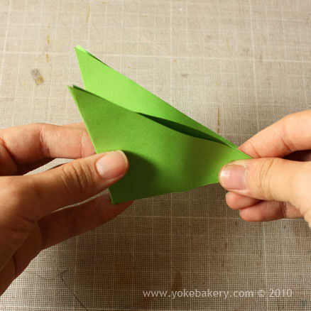 Doblar la abertura del triángulo en la mitad para hacer una línea de pliegue.