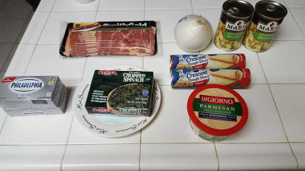 La receta base para hacer estos demuestran para arriba en Crescent Pillsbury rollos regularmente. He hecho mi propia versión con un dip de alcachofa espinaca que aprendí de mi madre.