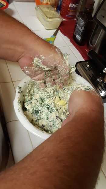 Molinetes de Dip de alcachofas espinacas (3 / 7 paso)