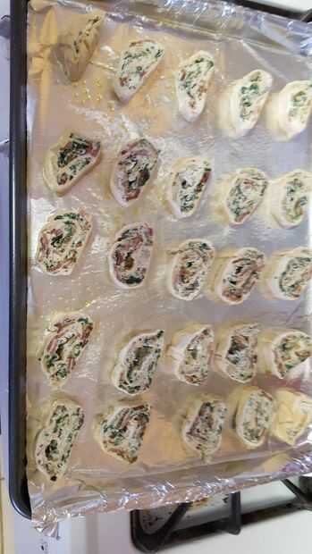 Molinetes de Dip de alcachofas espinacas (6 / 7 paso)