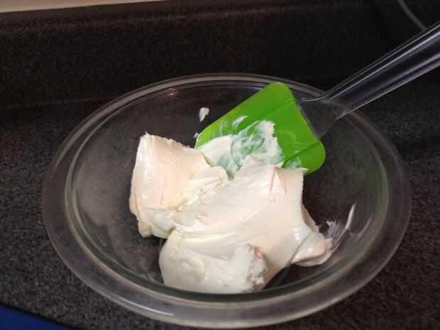 Vaciar el paquete de Filadelfia en un recipiente de tamaño mediano.
