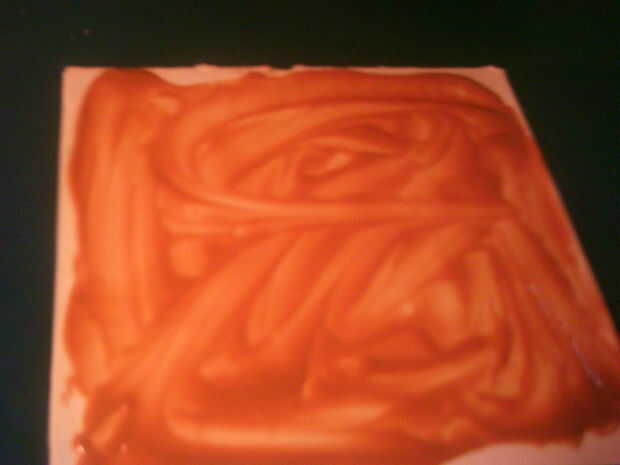 Propagación el caramelo como la pasta de tomate en la versión de Pizza, pero muy fino, no necesita mucho o va a todas partes.