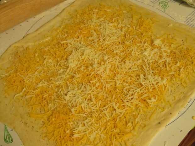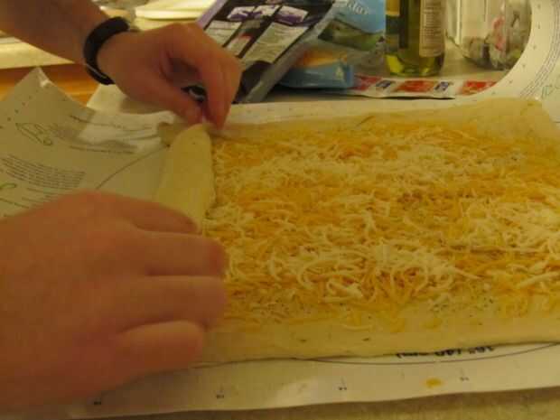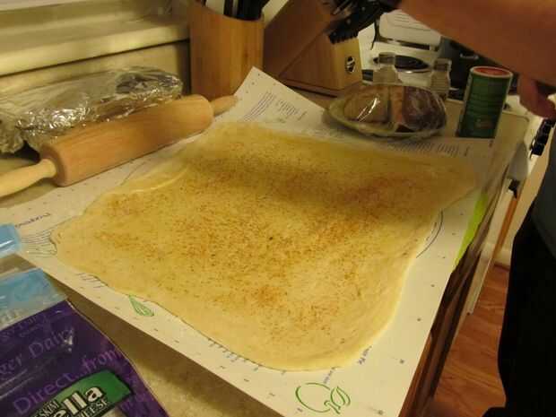 Enrolle la masa en un registro tan ajustadamente como sea posible. Asegúrese de pulsar el borde de la masa en el rodillo para que no se extienda y coloque abajo de la costura.