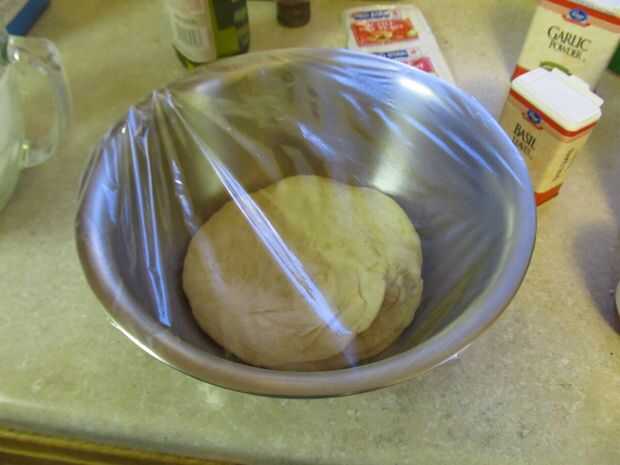 Asegúrese de que hay suficiente harina en la masa no se adhiera. Si te sientes super slick, tratar de lanzarlo. Una vez que la masa esté lo suficientemente plana, ligeramente Unte con aceite de oliva y espolvorear con suficientes especias para cubrir la masa. Hacer lo mismo con el queso y todo lo que se va a agregar. Hierbas frescas como albahaca son grandes.