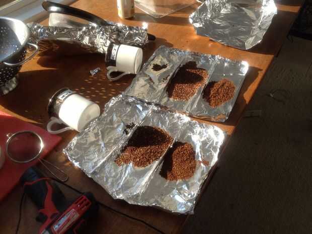 2. el café entonces se aprobó a través de un colador y un tamiz para separar los granos en tres grupos de tamaño.
