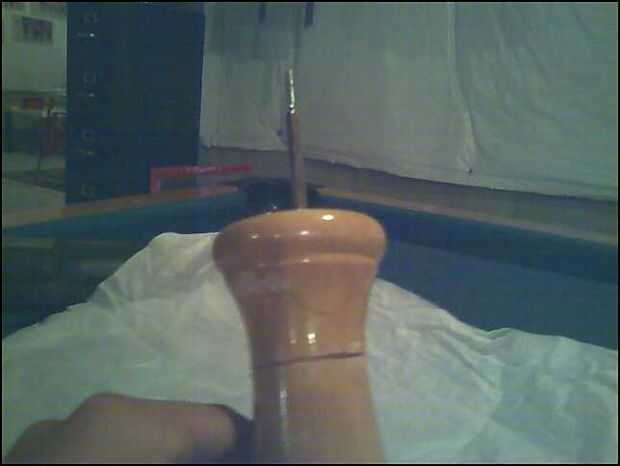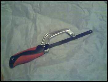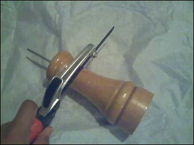 Para conseguir el peppermill parezca más proporcionado con el taladro, tendremos que sacar aproximadamente 2 pulgadas. No te preocupes, el peppermill todavía será capaz de sostener a un montón de pimienta. Mide aproximadamente dos pulgadas desde la parte superior y claramente la marca. Corte el peppermill en la línea que acaba de hacer. Una sierra de banda vendría útil aquí, pero vamos a usar una sierra pequeña, como una sierra para metales. Recuerde que cuando corte corte solamente a través de la madera, no la barra de metal en el centro. (hablaremos sobre esto más adelante) debe parecerse a la última imagen abajo después de completar este paso. Deseche el pedazo que corte.