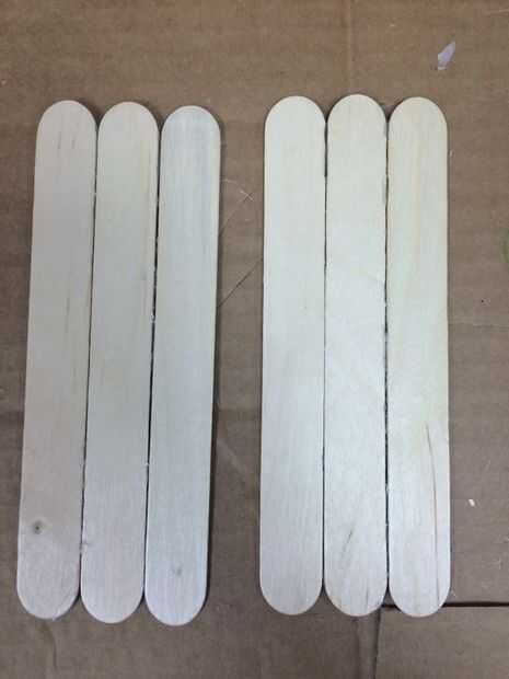 Usando los palos de paleta grande, pegamento 3 juntos lado a lado. Hacer esto dos veces para obtener los dos lados de la torre del molino de viento.