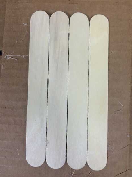 Usando los palos de paleta grande, unir 4 lado a lado. Hacer esto dos veces para obtener dos caras de la torre del molino de viento.