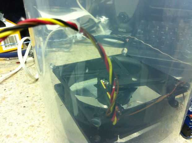 Ahora que baje la parte superior de nuestro molino de campo en nuestra placa del sensor. tenemos que hacer un agujero en la tapa justo por encima de la base por lo que pueden sacar los cables del dispositivo.