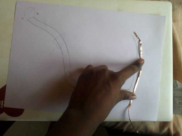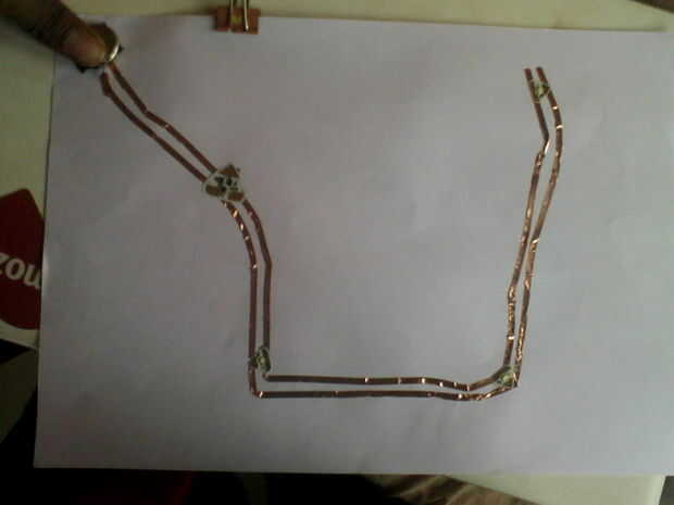 Tome una cinta de cobre y pegarlo en la hoja A4 como se muestra en la imagen.