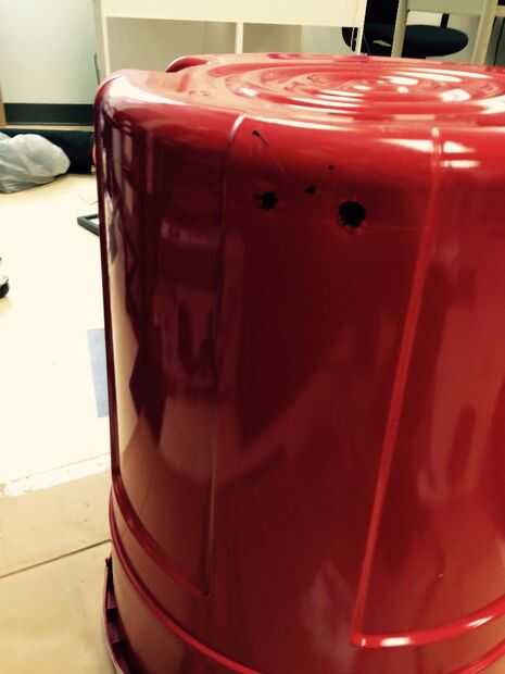 Antes usted pintar su bote de basura, cortó las manijas con el serrucho. Este paso es un desorden por lo que sugiere que se tome el poder fuera.