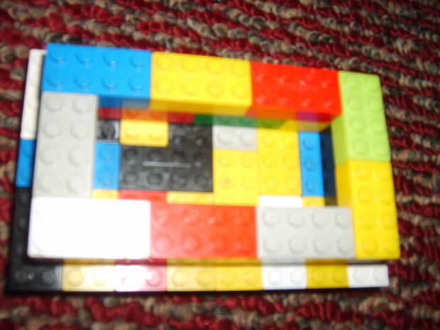 a continuación, hacemos el molino de viento más alto y empezar a reducir algunos. Para ello, hacer un cuadro al principio y luego agregar a la caja como una pirámide, si retira la foto abajo puede ver lo que quiero decir. Cuando su satisfecho con la altura básica, o cuando su listo para hacer tu torre, tapa la caja apagado con un lego delgado que cubre todo como se ve abajo.