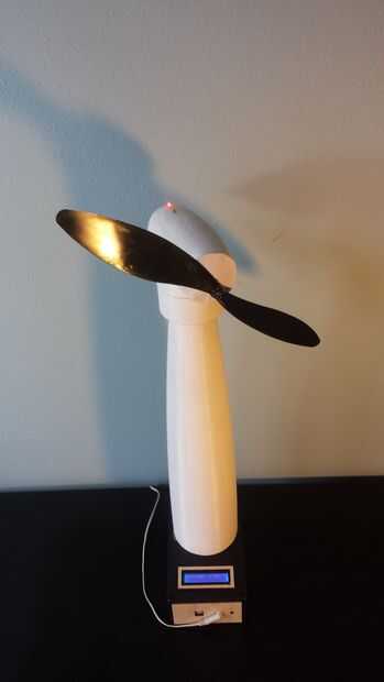 Esta caja sirve como la base principal para el molino de viento. 1" espesor de 2.5" ancho trozo de madera cortado a la longitud correcta de la caja sirve como la base para la placa arduino y protoboard. La madera se lleva a cabo en su lugar con silicona. Alinee el Arduino para que los puertos de carga y usb estén orientadas hacia la parte delantera de la caja. Marque las posiciones y haga estos agujeros. Entonces, después de que te has cortado el panel lcd laser, usted necesita hacer una abertura en la tapa de la caja para montar la pantalla lcd. Trazar el marco lcd centrado sobre la tapa, corte la abertura con el tamaño adecuado (esto puede conseguir un poco complicado, que un rompecabezas de hoja fina funciona mejor). Después se prepara el agujero de la lcd, línea de la pantalla lcd y atorníllelo en su lugar desde la parte inferior (Asegúrese de tener tornillos muy cortos para que no sobresalgan de la parte superior de la tapa) una vez realizados los agujeros, alinear los paneles de madera y epoxi en su lugar. Otro agujero de 10 mm debe taladrarse en distancia de 2/3 del lado opta por ser el frente de la caja. Este orificio servirá como la estructura de soporte de la columna vertebral. Cortar a su allthread un realizable (aproximadamente 24") y, usando 2 arandelas grandes y 2 tuercas de fijación, fijar la allthread a la tapa de la caja. Entonces necesita otro agujero a perforar lo más cerca posible de las arandelas (esto es lo que correremos nuestros cables a través de).